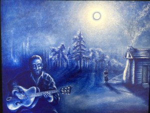 Steve was a huge fan of old blues music, knew a lot about the history, the styles and the individual musicians. He practically revered the tradition. He gifted this piece to me around 2014 (currently hanging in my dining area). When he gave it to me I asked, “Is that supposed to be Muddy Waters?” To me it actually looks quite a bit like him. Steve was insistent that it was definitely not a depiction of any known musician. But Muddy was possibly his favourite blues artist, so I’ve always continued to wonder . . .